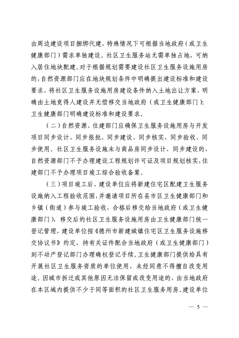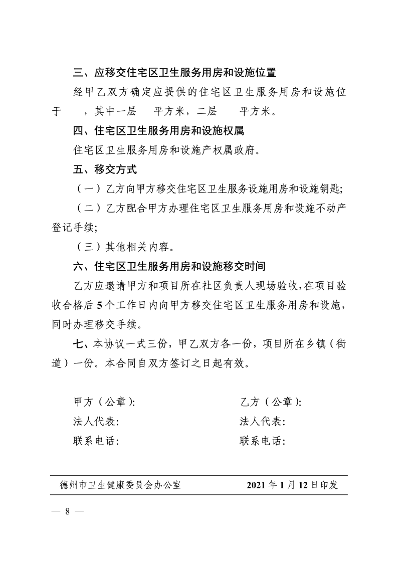 关于印发《德州市新建城镇住宅区卫生服务设施建设、移交、管理办法》的通知