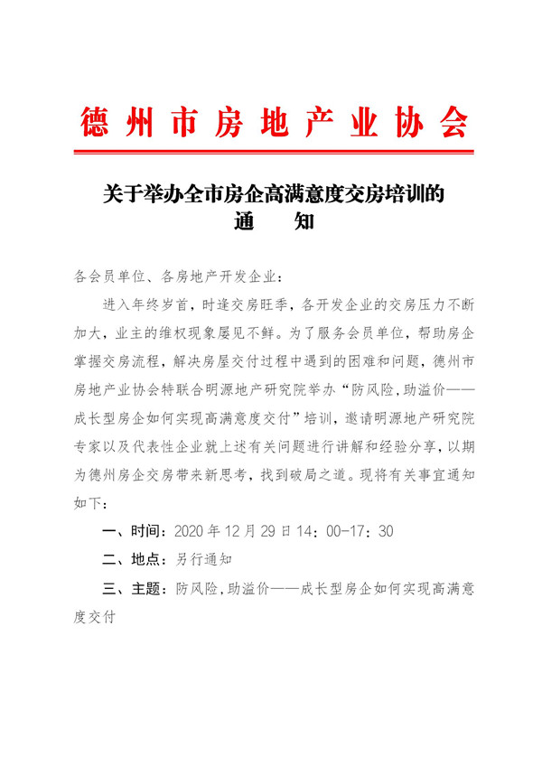 关于举办“成长型房企如何实现高满意度交付”专题讲座的通知.pdf