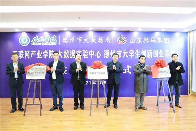 1月9日,德州学院、市大数据局、山东黑马集团共建“互联网产业学院”、“大数据实验中心”、“德州市大学生创新创业基地”签约揭牌仪式在德州学院举行,德州市委副书记张传忠,德州市大数据局副局长张兵,山东黑马集团董事长刘玉江,山东黑马集团执行董事长、总裁刘辉东,德州学院党委书记车滨,校长赵胜村,出席本次揭牌仪式。