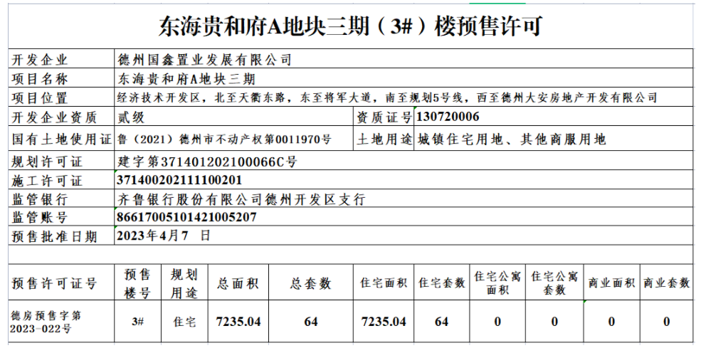 东海贵和府A地块三期(3#)楼预售许可