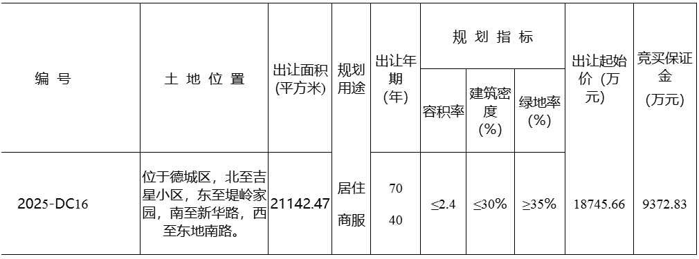 近日,德州市德城区以网上挂牌方式成功出让一宗位于新河路与东地南路交汇处的优质地块(编号:2025-DC16)。该地块由德州市属国企城投竞得,标志着德城区在城市更新领域再落关键一子,也是德州南部高密度老城片区迈向“内涵式更新”的重要一步。