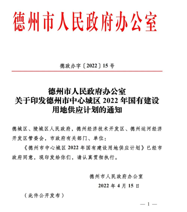 日前,德州市人民政府办公室发布《德州市中心城区2022年国有建设用地供应计划 》,我市中心城区2022年国有建设用地供应计划总量为816公顷。其中,住宅用地315公顷,占供应总量的38.60%;商服用地136公顷,占供应总量的16.67%。