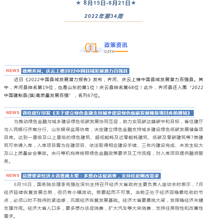 第35周简报 | 到2025年,德州市新开工装配式建筑占比达40%,绿色建筑占比达到100%